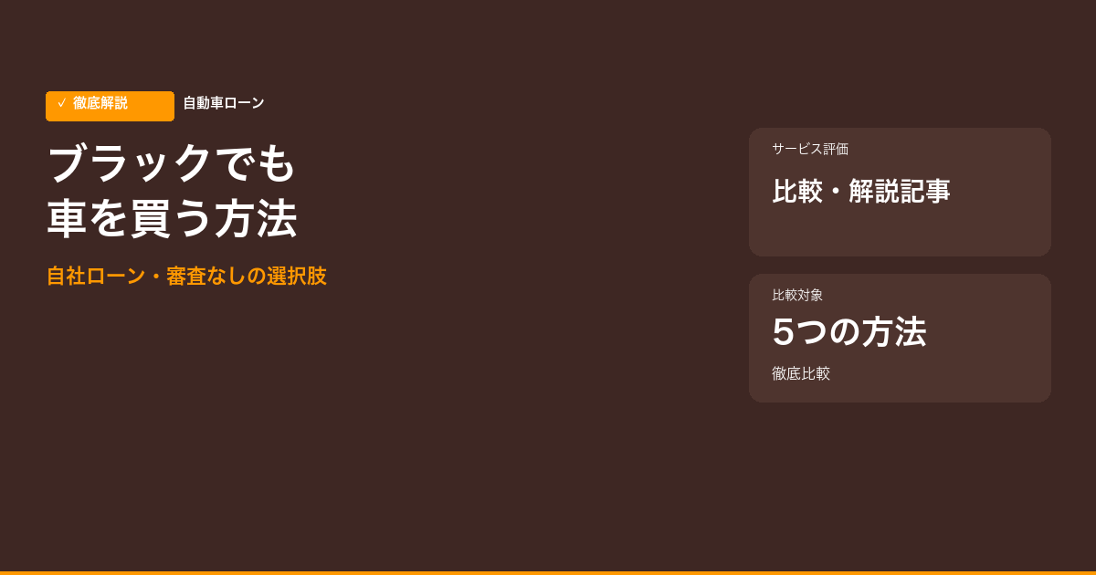 ⚠️ 重要: 「審査なし」と「自社ローン」は異なります。自社ローンは独自基準で審査を行いますが、まったく審査がないわけではありません。「審査一切なし」を謳う業者は特に注意してください。