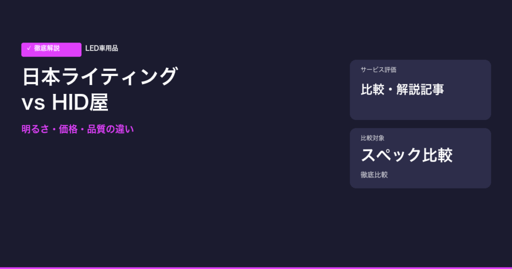 日本ライティングとHID屋のLEDヘッドライトバルブを徹底比較。明るさ・価格・品質・車検対応・保証・口コミまで全項目で違いを解説。H4・H11・HB3など形状別おすすめも紹介。2026年最新版。 -